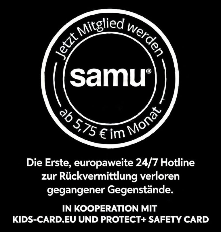 Ob verlorene Schlüssel, vergessenes Handy oder liegen gelassener Laptop: Mit den samu® ID Anhängern oder ID Aufklebern – können ehrliche Finder dich sofort und anonym kontaktieren – 24/7, europaweit.